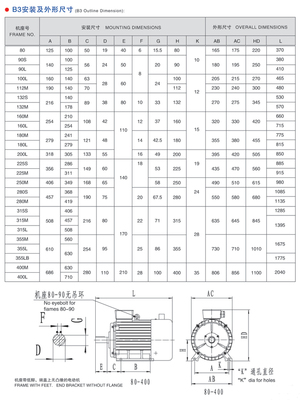 電動機接法:3千瓦以下為Y接法,4千瓦以上為△接法。