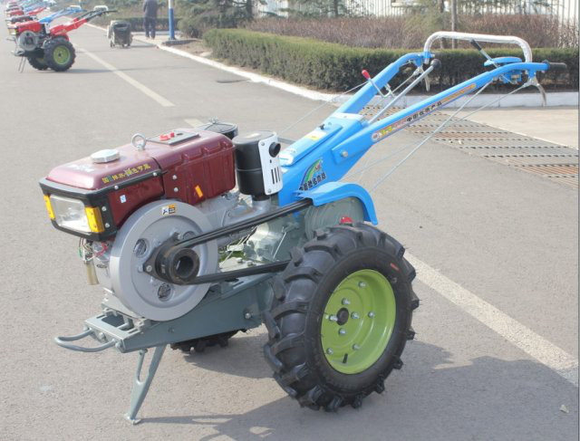 SH101-1手扶拖拉機為牽引、驅(qū)動兼用型,101型可配套動力為192、ZH192型柴油機,121型可配套動力為ZH196型柴油機,用戶可根據(jù)實際需要配套動力不大于規(guī)定值得其它型號柴油機; 該機結(jié)構(gòu)簡單緊湊、操縱輕便靈活、重量車、使用可靠、維修方便、通過性好等優(yōu)點; 廣泛適用平原山區(qū)及丘陵地區(qū)水旱田作業(yè),配上相應(yīng)農(nóng)機具可進行犁耕、旋耕、收割、播種、打場、抽水等多種作業(yè); 可牽引拖車進行短途運輸,配有照明設(shè)備,可在夜間行駛;該機可配電啟動,免手搖。