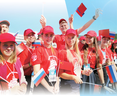 俄羅斯青少年手舉中俄兩國國旗,歡迎中國客人。(人民日報記者 屈佩 攝)