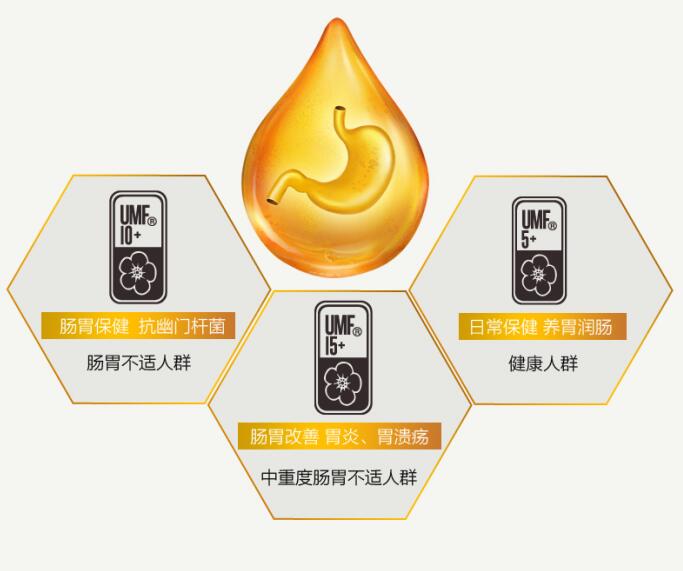 金長生新西蘭麥盧卡蜂蜜主要成分都是葡萄糖和果糖,葡萄糖和果糖屬于單糖,是不需要經(jīng)過人體消化,就可以直接被人體吸收利用的。一方面,有胃病的人吃蜂蜜,不需要經(jīng)過胃部消化,單糖可以直接為身體所吸收;另一方面,蜂蜜中所含有的各種酶類物質(zhì),可以幫助人體快速的消化吸收,促進(jìn)人體的新陳代謝,減輕胃部負(fù)擔(dān);再則,新西蘭的金長生麥盧卡蜂蜜中還含有抗菌消炎成分,針對病理性胃病有很好的緩解功效,比如新西蘭的金長生麥盧卡蜂蜜UMF15+,不僅輕度胃腸不適人群可以服用,針對胃痛和消化不良等病癥也有很好的效果。