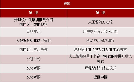 大學(xué)目前對(duì)中國(guó)各行業(yè)的企業(yè)管理人員或大學(xué)教師,推出一系列有針對(duì)性的培訓(xùn)課程。其中,針對(duì)《人工智能》的2周培訓(xùn)課程將在德國(guó)授課,具體內(nèi)容如下: