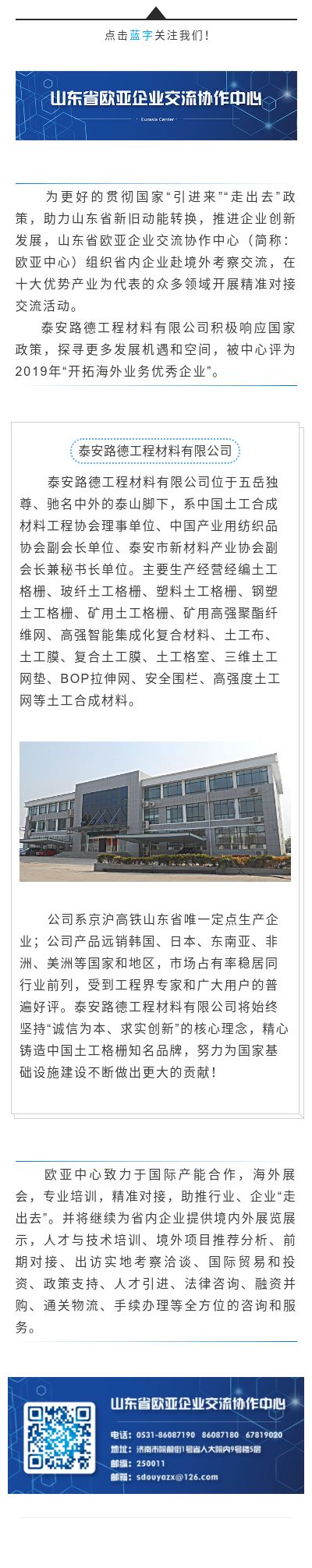 2019“開拓海外業(yè)務(wù)優(yōu)秀企業(yè)”風(fēng)采——泰安路德工程材料有限公司
